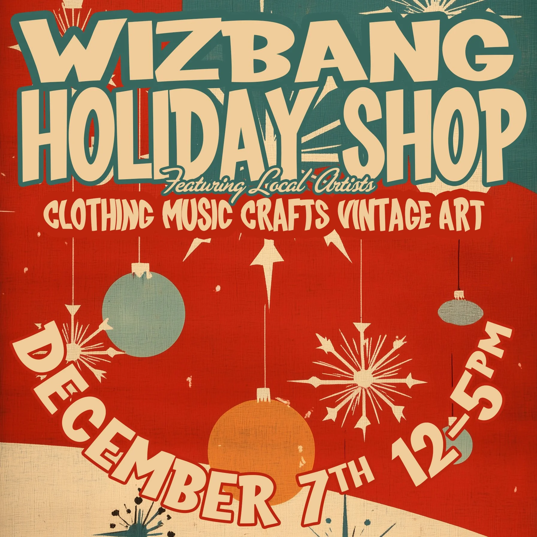 Join us on December 7th from 12–5 PM at Wizbang Theatre for a festive holiday market! Enjoy live music while exploring a curated selection of unique treasures from local artists, including art, prints, collectibles, jewelry, clothing, and rare vintage finds. Sip on seasonal refreshments from the Spirit Room cocktail bar as you soak in the holiday cheer. It's the perfect place to find one-of-a-kind gifts and celebrate the season with friends and family!
